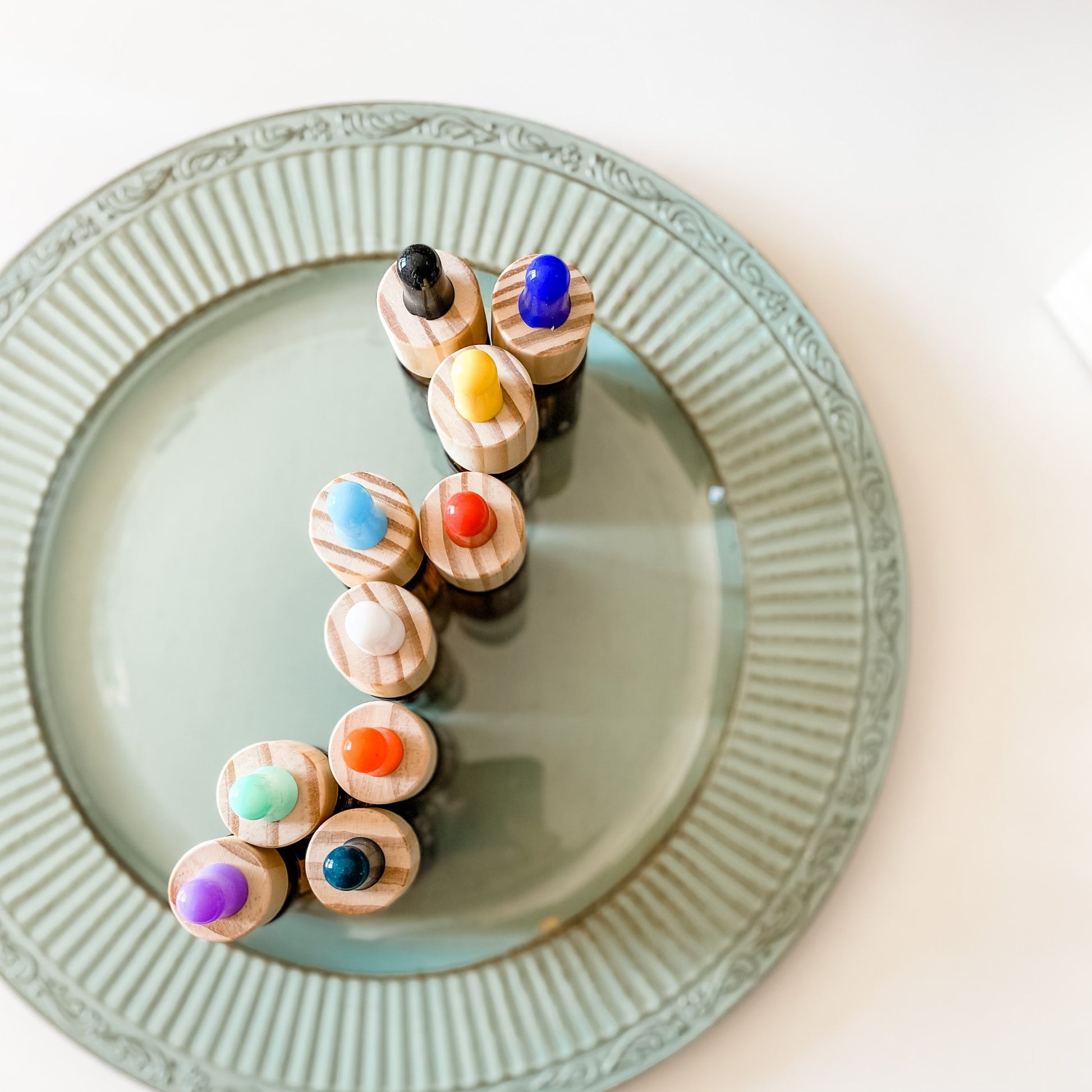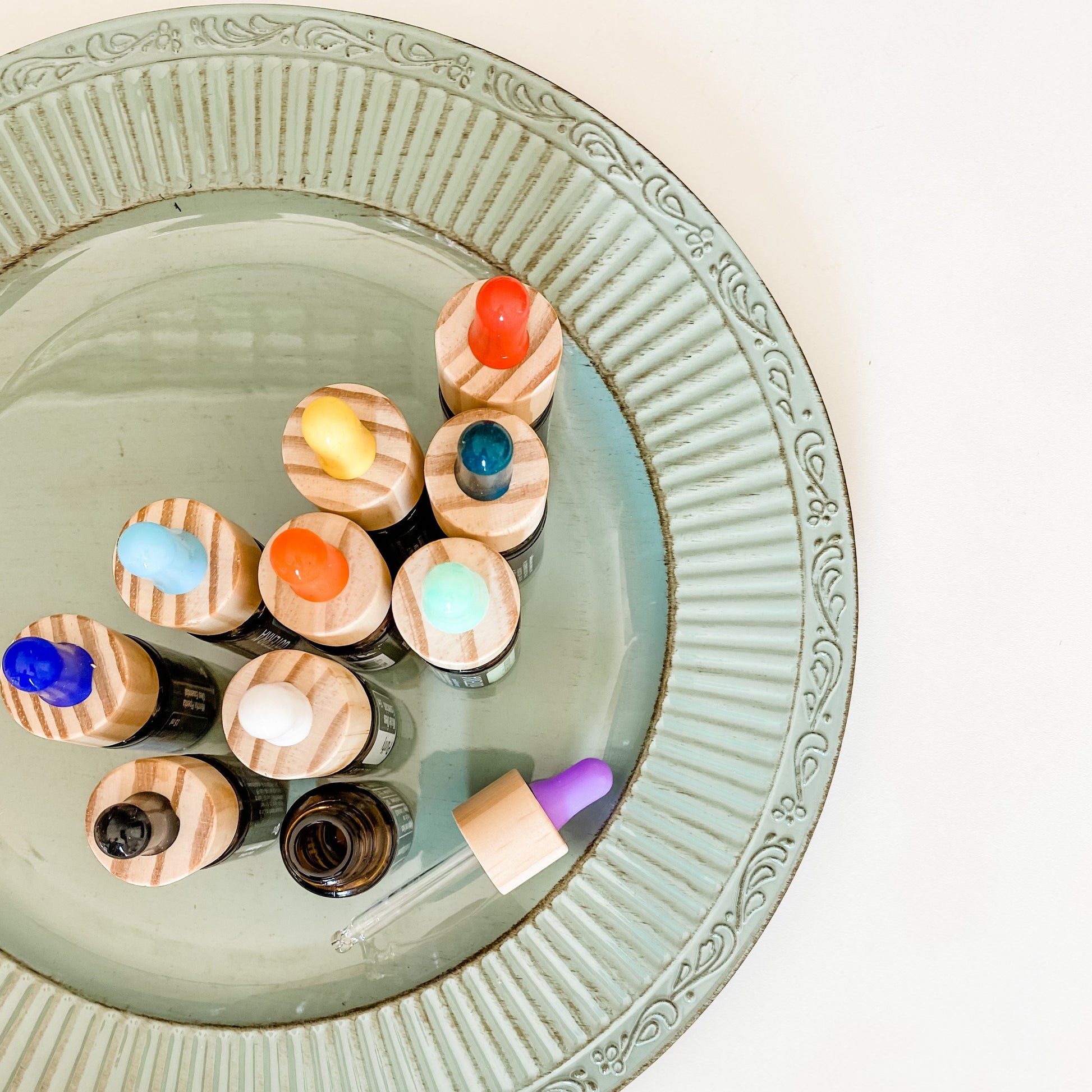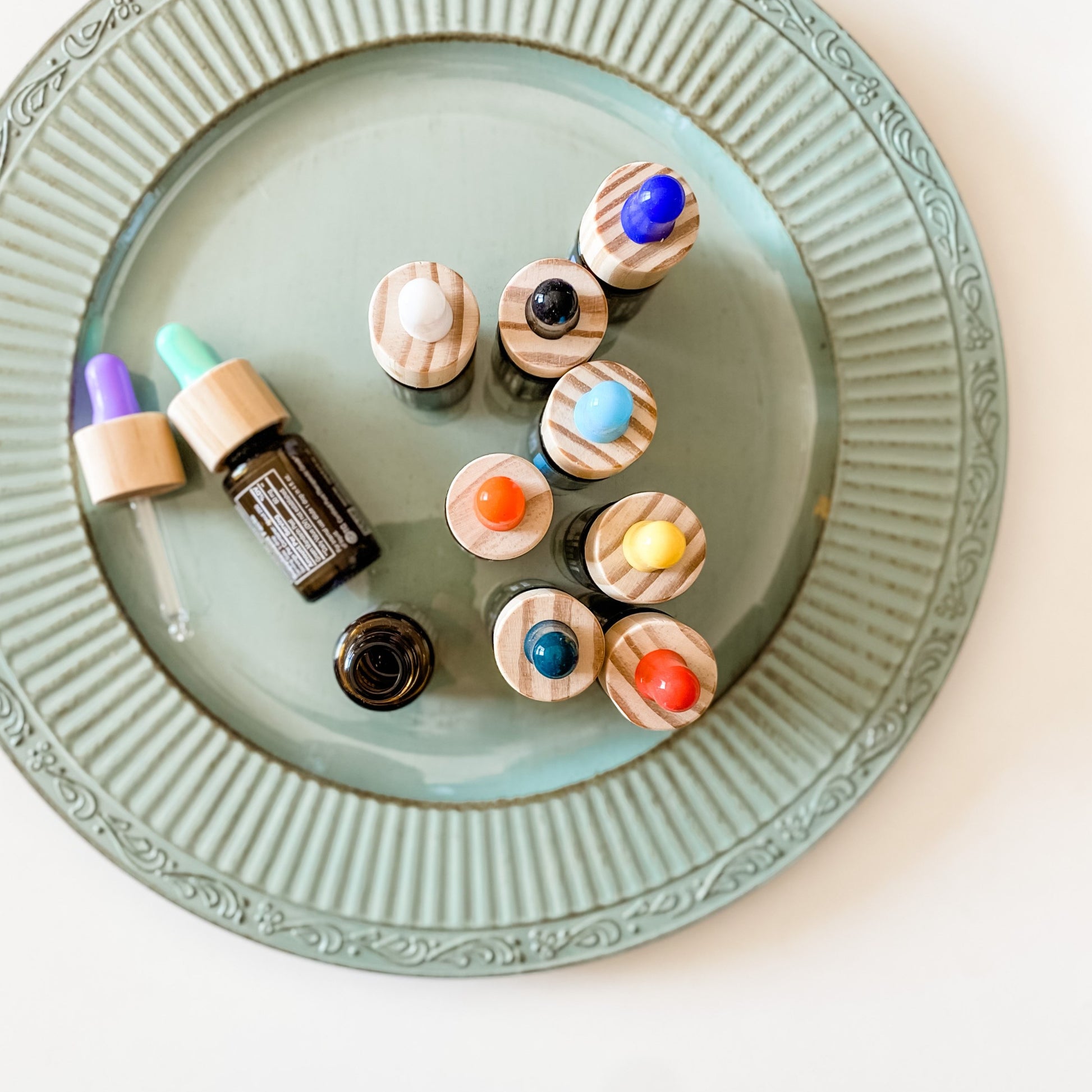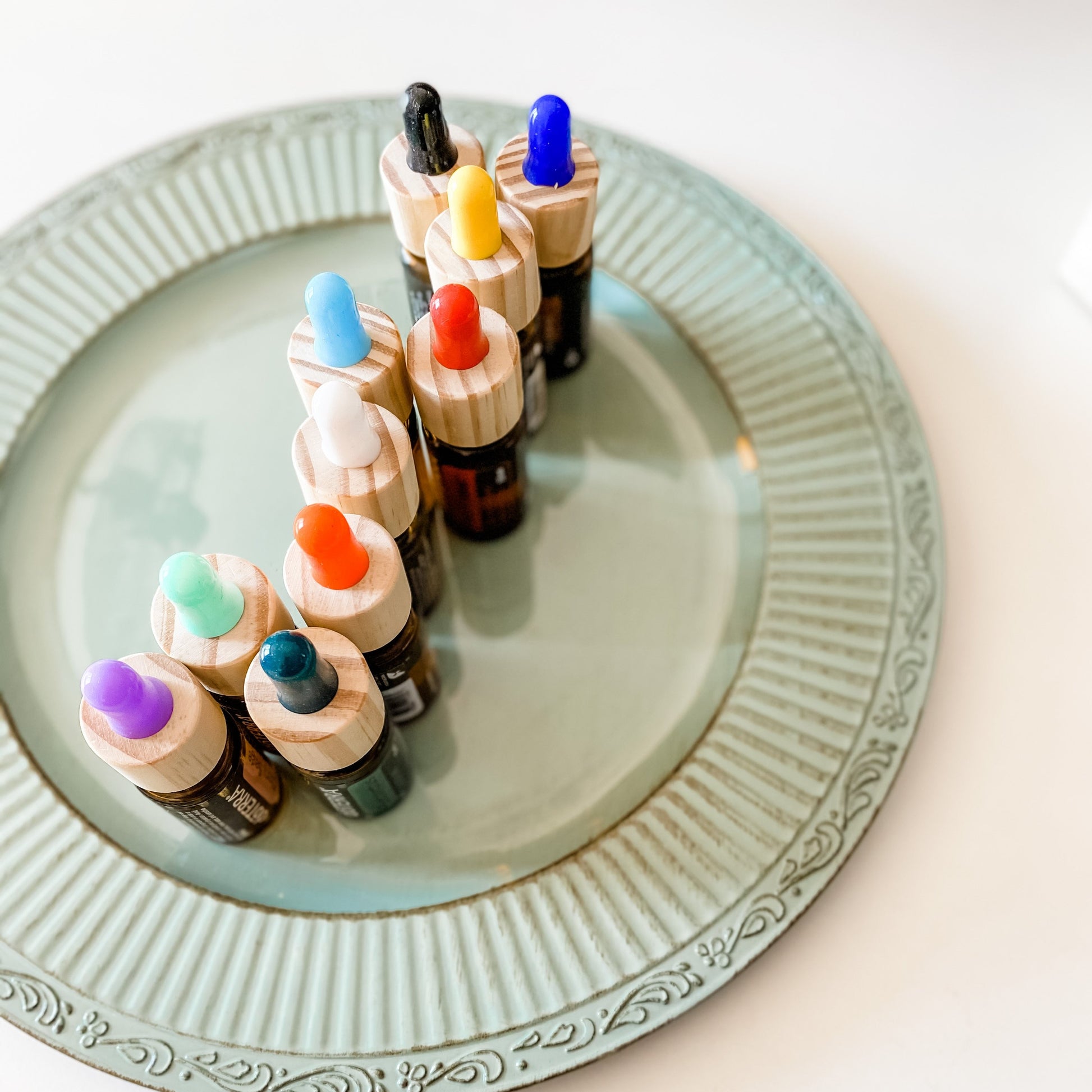 Experimente trocar a tampa original do seu frasco por uma tampa conta-gotas com bulbos coloridos que combinem com seus óleos essenciais, e facilite o uso no dia a dia!