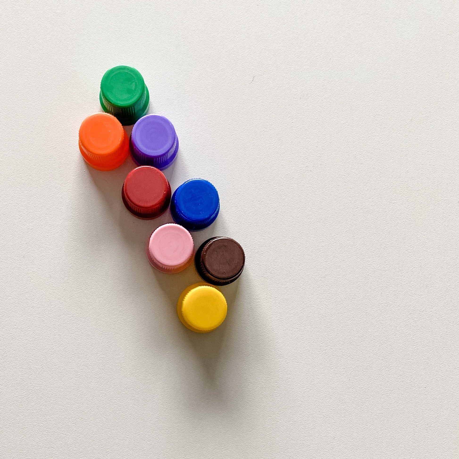 O kit de tampas rosca lacre contém 8 tampas coloridas diversas, sendo: