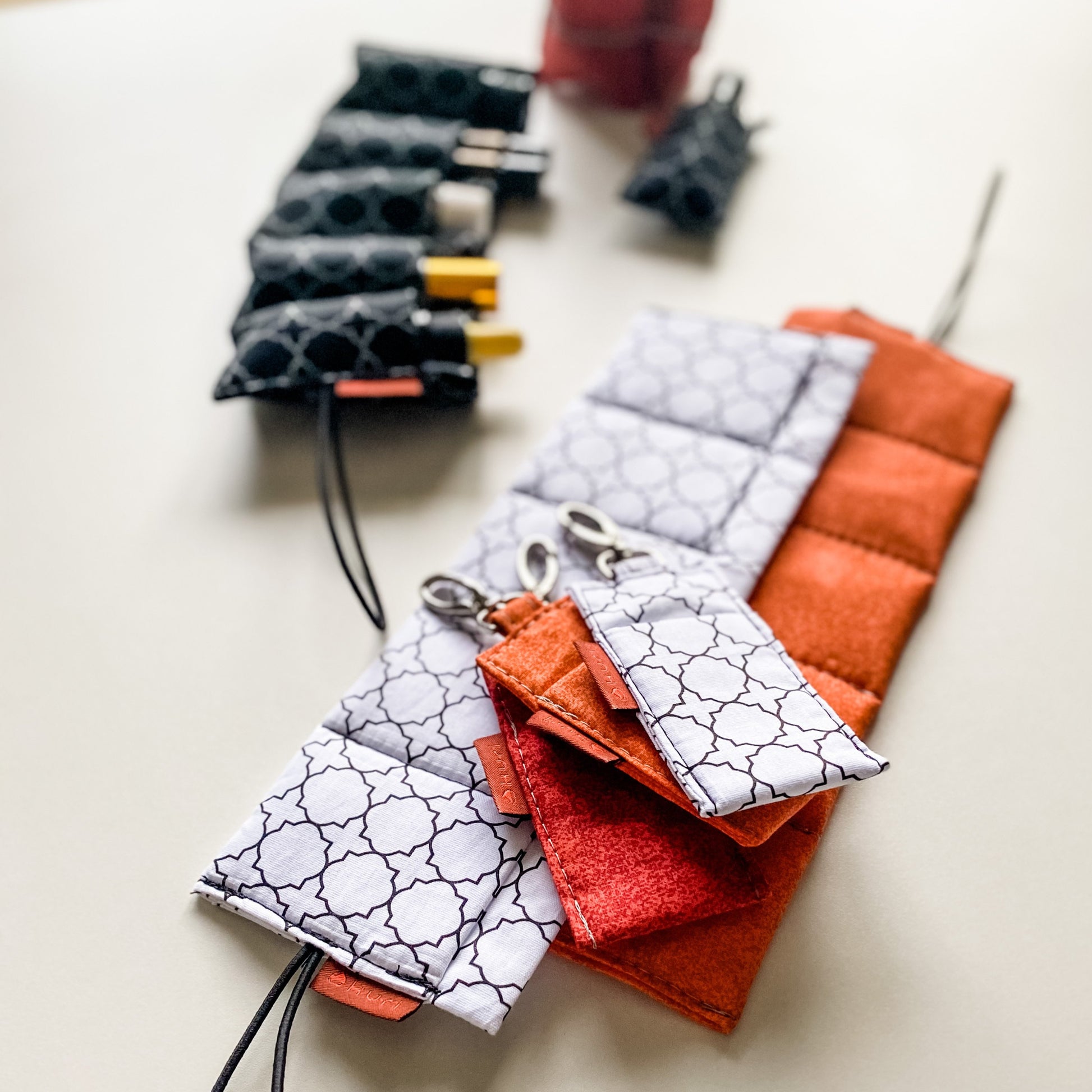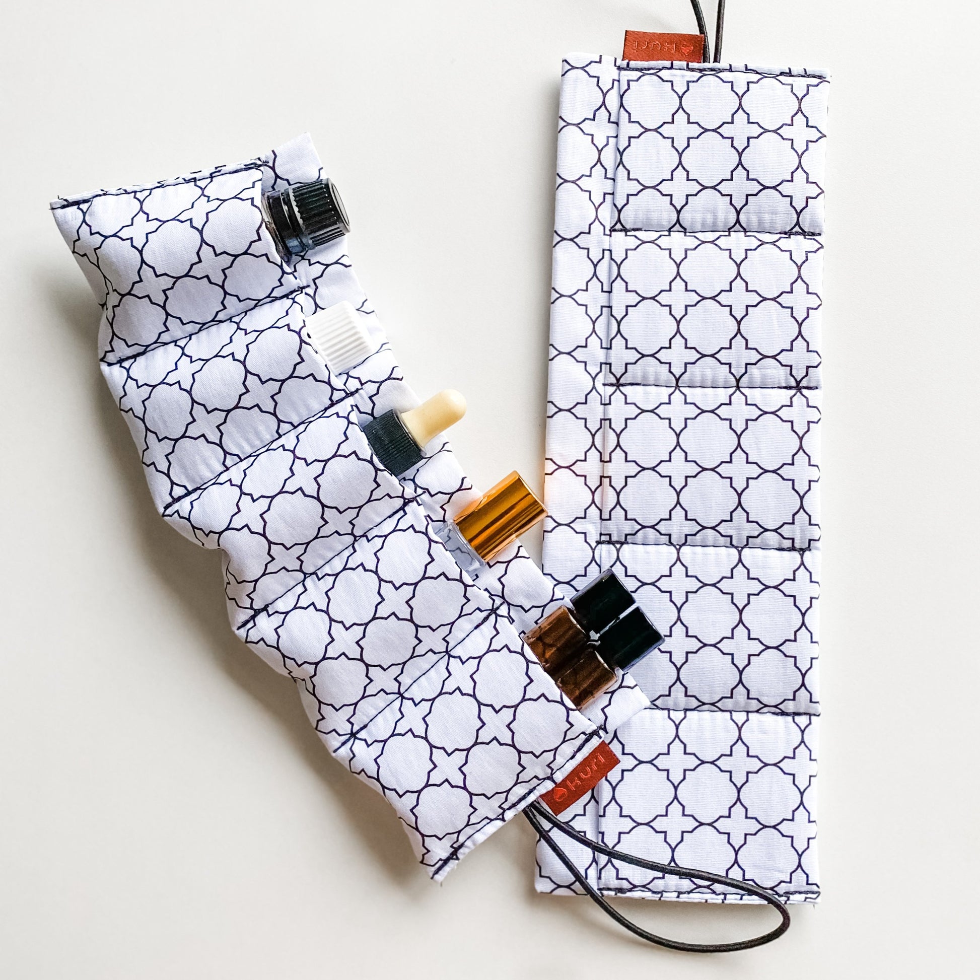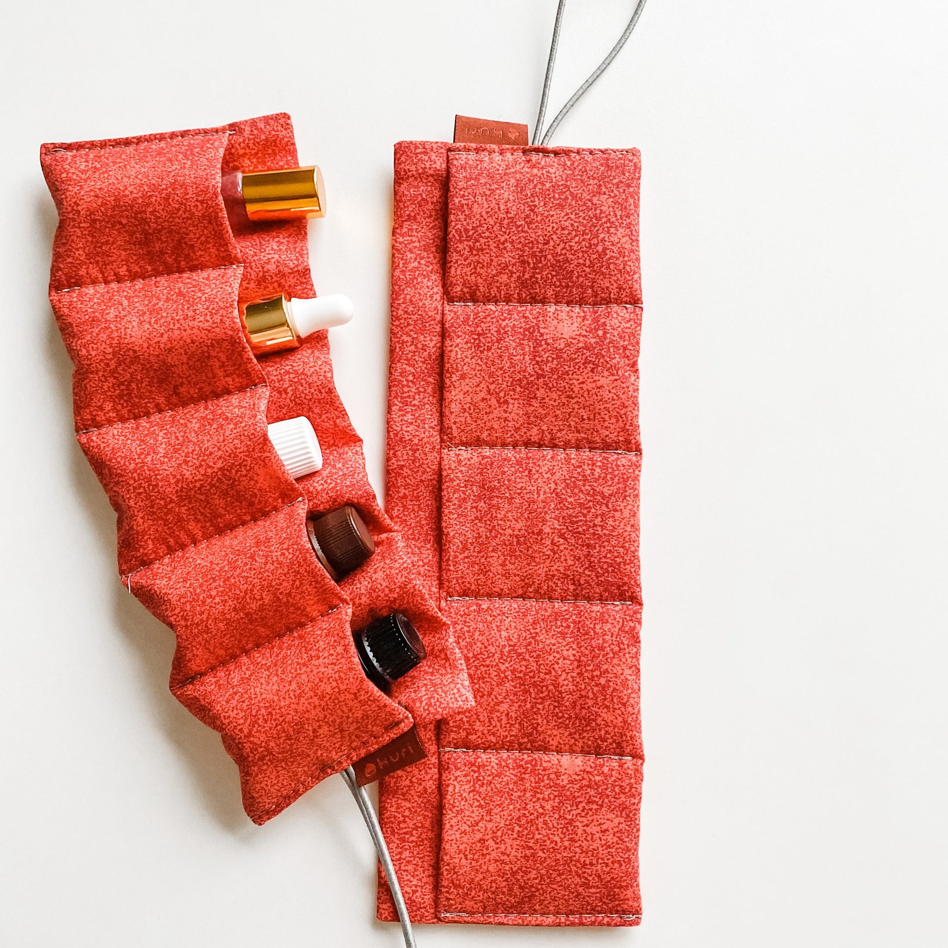 A linha de porta frascos desenvolvida pela KURI especialmente para a be.OIL é ideal para levar os frascos de óleos essenciais de forma segura e prática, com muito estilo! Basta enrolar e colocar diretamente na bolsa ou dentro de sua necessaire.