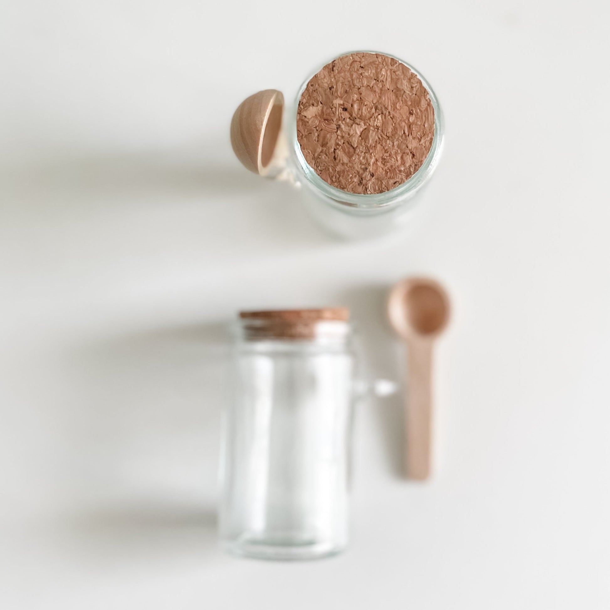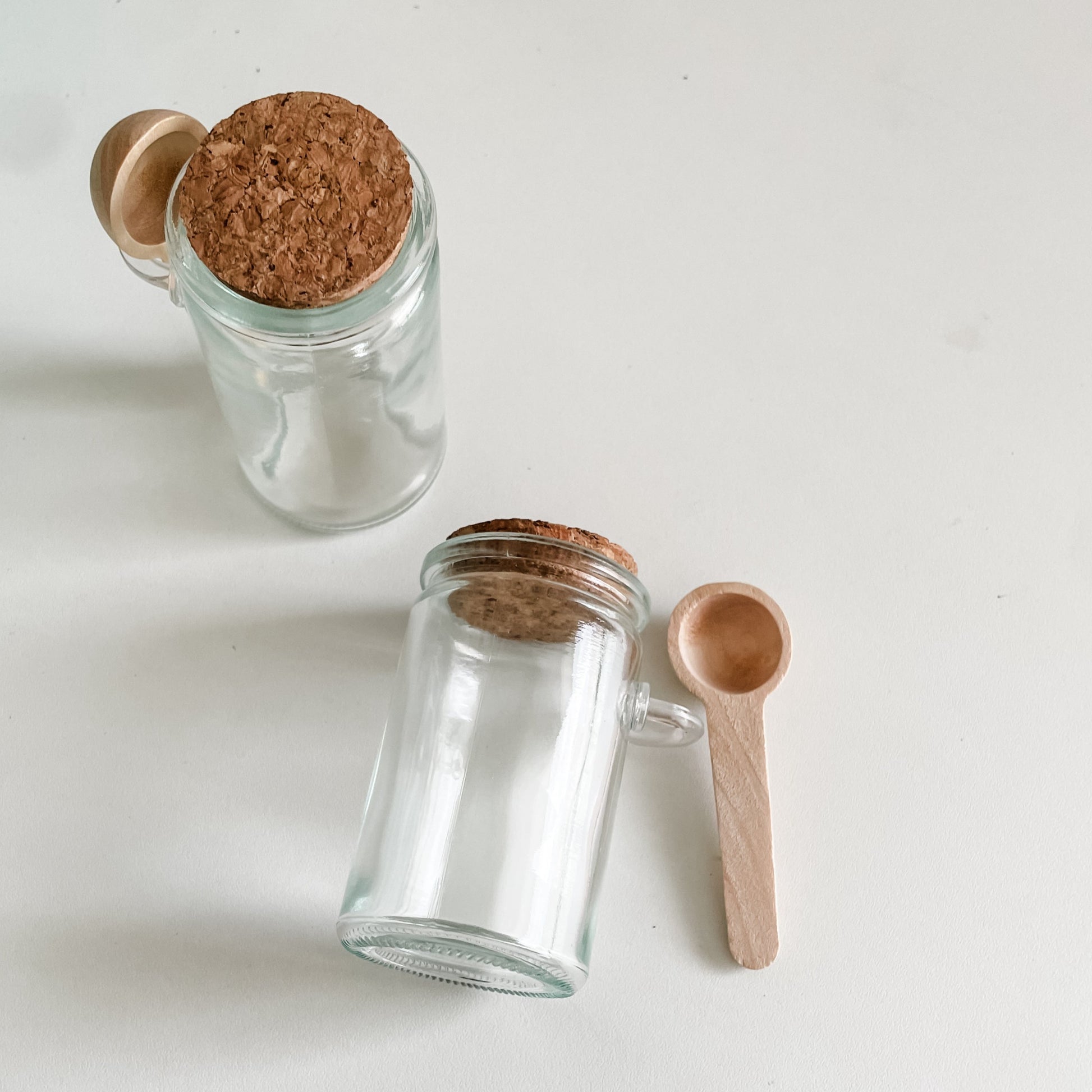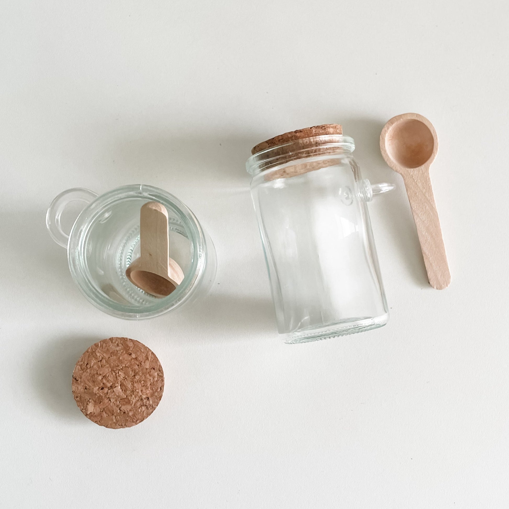 - Composição: pote vidro + mini colher madeira + tampa cortiça