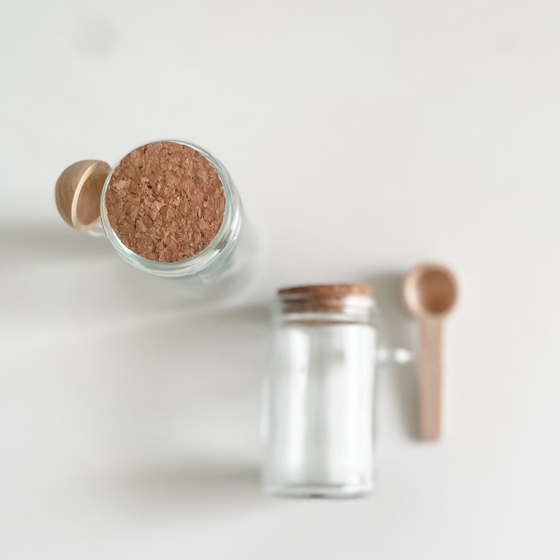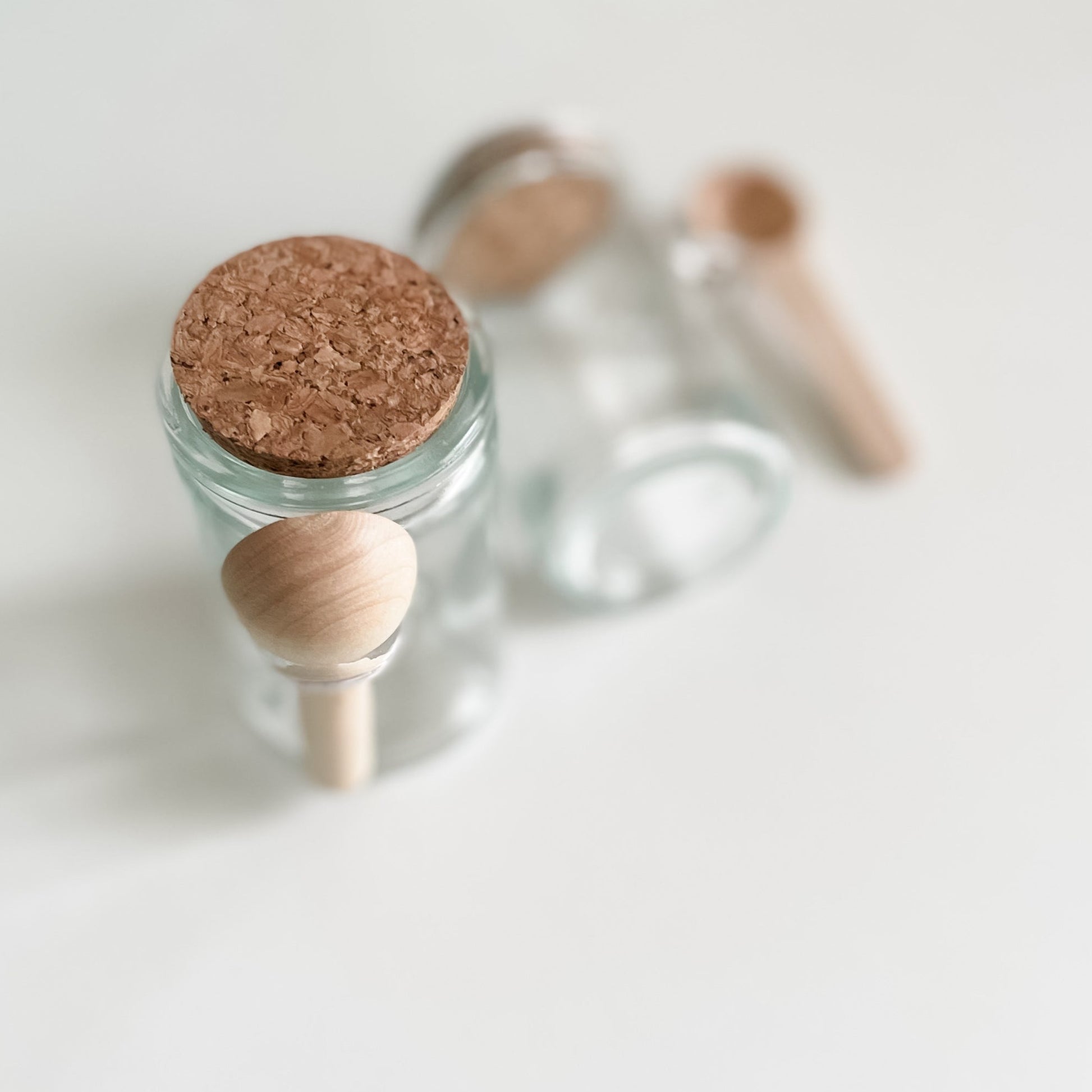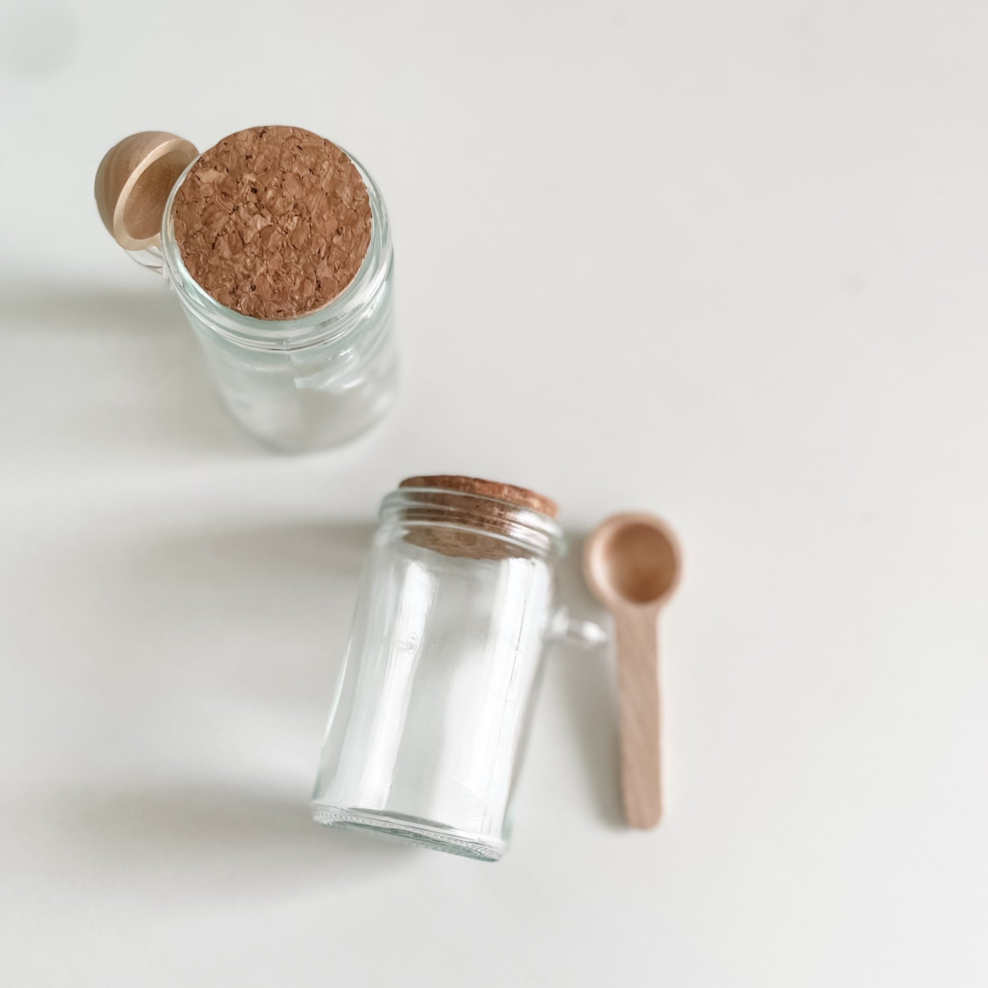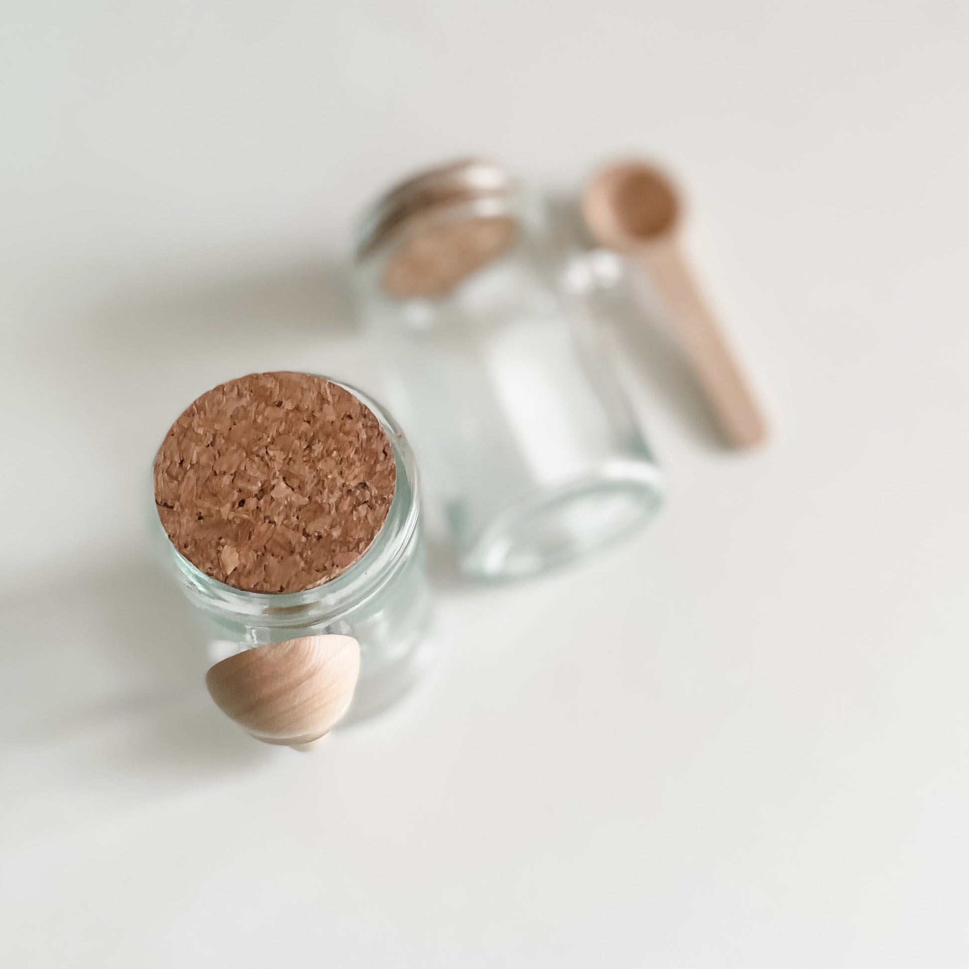 - Composição: pote vidro + mini colher madeira + tampa cortiça