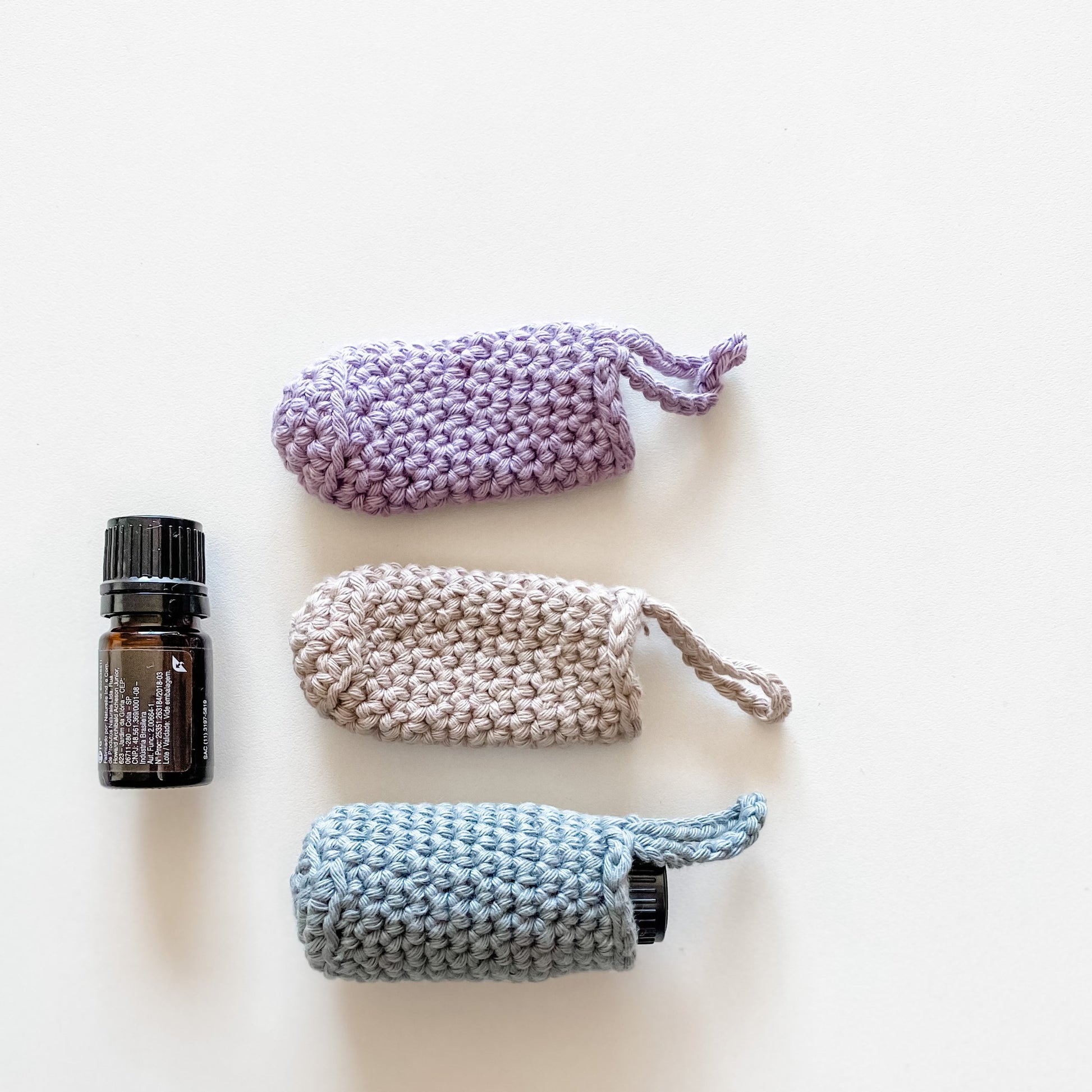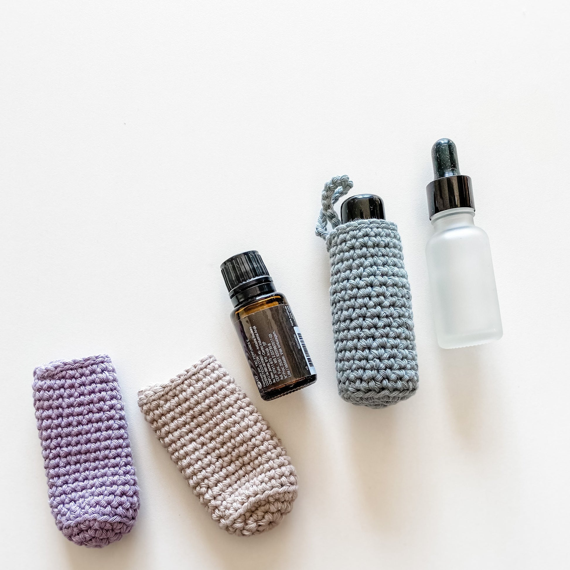 As capinhas de crochê desenvolvidas pela @leah.nf são feitas com fio 100% algodão natural ou orgânico, e irão proteger seus frascos da luz e de eventuais impactos. Cores exclusivas be.OIL.